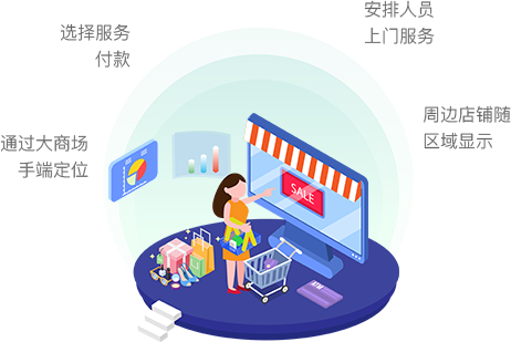 開發移動端的微商城LBS定位功能,用戶可通過平臺清晰的定位到周邊的商家店鋪,可選擇到店體驗或者商家進行上門服務。